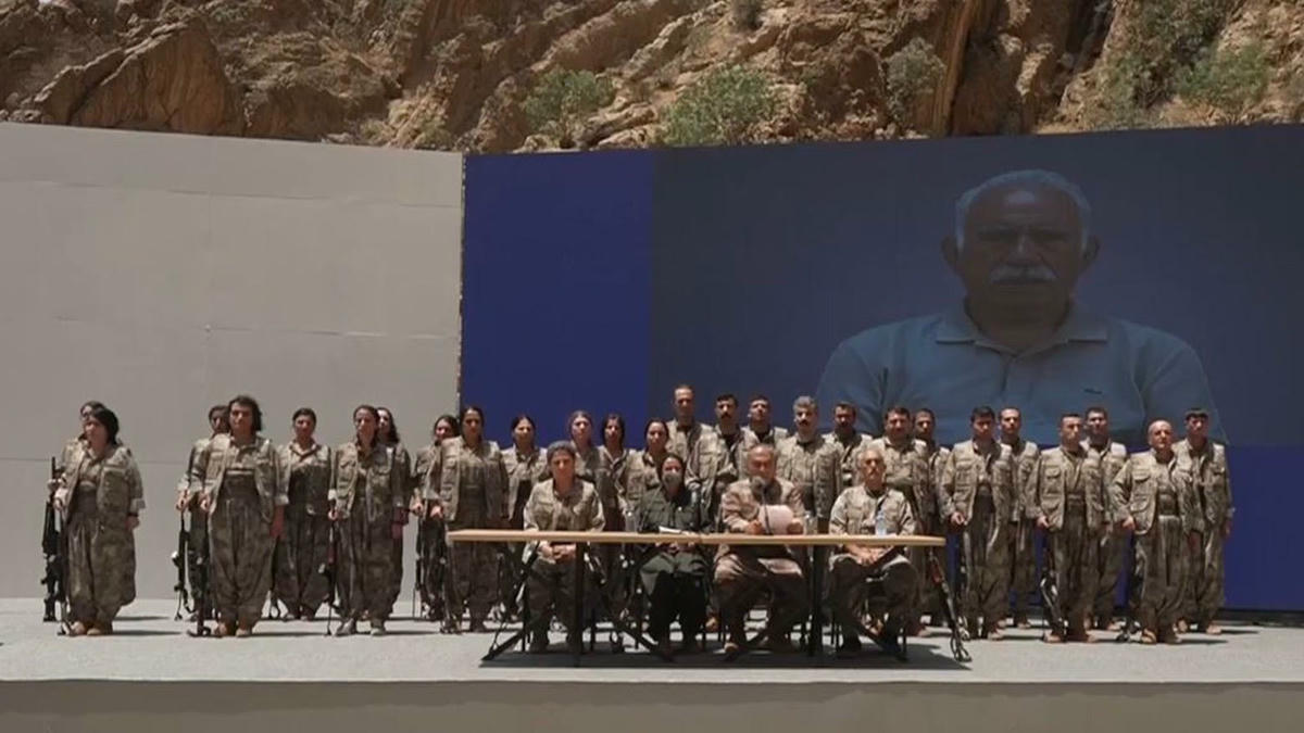 Dev bir pervanenin soğutmaya çalıştığı alanda Ahmet Türk, Ayşegül Doğan, Meral Beştaş Danış, Leyla Zana, Cengiz Çandar, Sezai Temelli, Sırrı Sakık, Gültan Kışanak, Mithat Sancar gibi Kürt siyasetinden isimler de yerini almış durumda. Alan en azından çalışanlar dışında 500 kişiyi ağırlıyor. Hemen yanımıza bir masa konuluyor ve Irak ve Irak Kürdistan Bölgesel Yönetimi’nin İçişleri Bakanlıklarından iki üst düzey yetkili, “silah bırakma” resmi gözlemcileri olarak yerini alıyor. Diğer yandan bir heyet daha var. THİV, İHD ve ÖHD. PKK’liler bıraktıkları silahların envanterini bir liste halinde bu üç insan hakları örgütüne teslim edecek. Alanda bir anons yapılıyor, “görüntü yasak, sosyal medya yasak ve slogan atmak yasak”. Tören, ortak ve tek yayından takip edilecek. Saat 11.20’de PKK’li grup yamacın merdivenlerinden inmeye başlıyor. Önde KCK Eş Başkanı Bese Hozat. Arkasında 14 kadın, 15 erkek PKK’li, merdivenleri iniyor, ellerinde silahları, disiplin tam. Herkes bir an duruyor, sonra slogan değil ama zılgıtlar ve alkışlar yükseliyor. Kısa süreli ama. Tam bir disiplin içinde tek tek geçip platforma diziliyorlar. Bese Hozat ve üç yönetici daha masaya oturuyor. Diğerleri ise kadınlar sol tarafa, erkekler sağ tarafa düzeniyle platforma yerleşiyor. Silah bırakacak olanların örgüte çeşitli zamanlarda girenler arasından seçildiği belli. Yaşlar, kıdemler farklı. Ellerinde ya da omuzlarında taşıdıkları silahlar da. Yüzler ciddi, disiplinli, kendinden emin ve zaman zaman ifadesiz. Daha fazlasını yüzlerinden okumak imkânsız gibi ama bir coşku ya da heyecan olmadığı yüzde yüz kesin. Verilen görevlerini yapıyorlar daha çok. Onu da ciddiyet ve disiplinle.