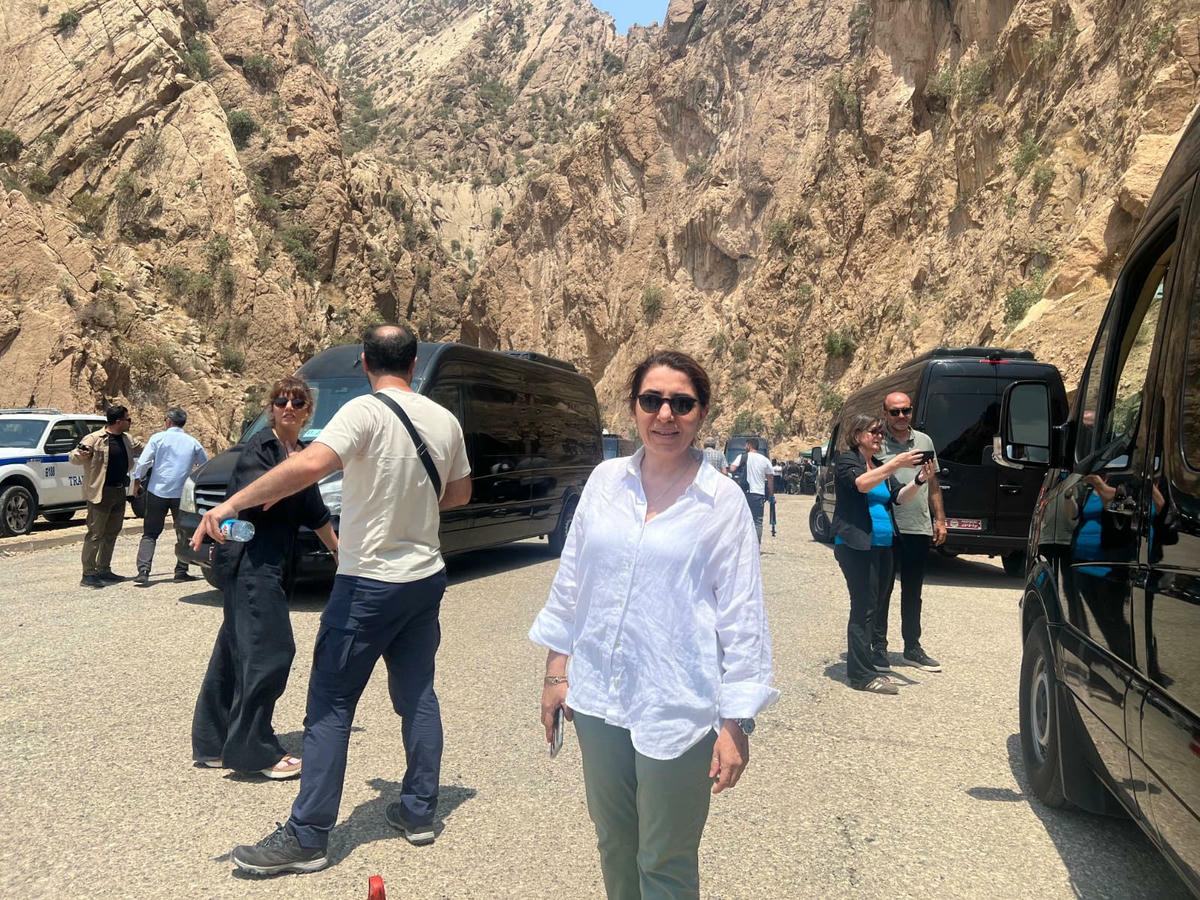 Telefonda 48 derece yazıyor ama gerçekte 55’e ulaşmış gibi. 40’a yakın araç konvoy olarak Erbil’den Süleymaniye'ye doğru ilerliyor. Süleymaniye’ye yaklaştıkça vadinin iki yamacında özel kuvvetler ve zırhlı araçlar beliriyor. Plakalar Irak ve Irak Kürdistan Bölgesel Yönetimi’ne ait. Güvenlik önlemleri çok yüksek. 55 derece sıcaklıkta yüzler kapalı, duruşlar sert. Vadide uzun bir tırmanış başlıyor, toz bulutlarının eşliğinde. Araçlarda çoğu Türkiye’den 30’u gazeteci, 150 kişi, PKK’nin günler önce açıkladığı “silah bırakma merasimi”ne tanıklık etmek için perşembeden beri yollarda. Bu grup, İstanbul’dan, Ankara’dan, İzmir’den, Cizre’den, Mardin’den ve çeşitli ülkelerden gelip Diyarbakır’da buluştu, “Ne olacak?” merakı ve “Tarihi bir ana şahit olma” fikriyle yolculuğa başladı. DEM Parti’nin daveti ve organizasyonunda dört otobüsle yola çıkan ekip, Habur Sınır Kapısı’nı geçip gece yarısı Erbil’e vardı, bir anlamda “Hayırlı Cuma”* da başlamıştı.