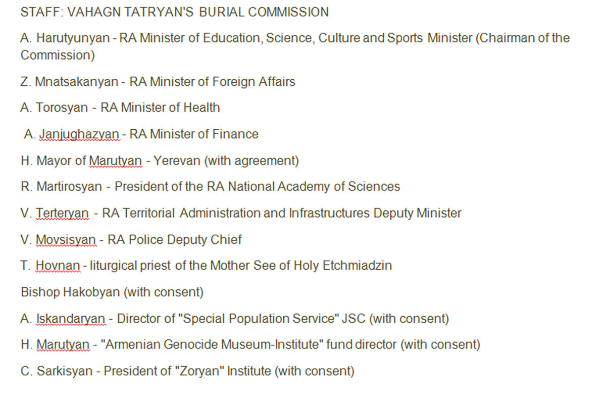 Komisyonun yaptığı ise, Dadrian için güzel bir tören düzenledikten sonra, onu kimsesiz bir insan gibi, mezar taşı bile olmadan bir mezarlığa atmak olmuş. Dadrian’ın yakınları birkaç sefer konu hakkında şikayette bulunmuşlar ama dikkate alan olmamış.