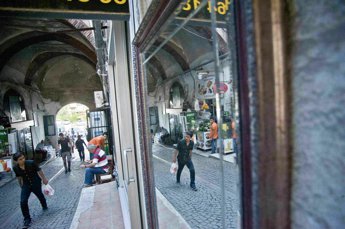 Avlunun arka kısımlarına denk düşen Otel Sipahi Palas İstanbul’da alışverişe gelen tüccarların kaldığı mekânmış. Aynı ismi taşısa da, kirli görünümlü grimsi tül perdeleri ve çürümüş pencere pervazlarına dayalı bir çift ayakkabı, başka hizmetler verdiğini düşündürüyor şimdilerde...