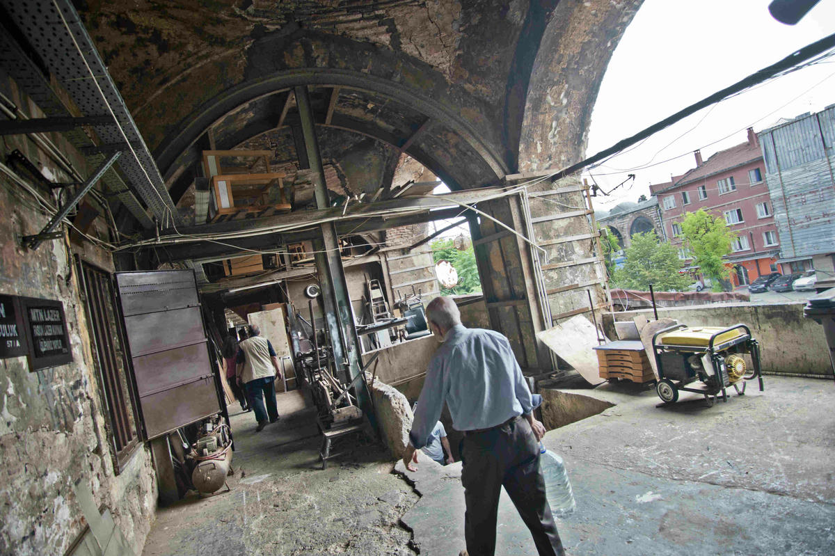 Üst kat manzarası aynı zamanda aradan geçen zamanın izlerini de aşikâr ediyor. Uydu antenlerinin mantar gibi kapladığı kadim taşların arasından kemer üzerinde otlar bitmiş. Aram Usta’nın kılıç, nargile, şamdan ürettiği yerde domates büyüyor saksıda usul usul. “Bir de Rum marangoz Koço Usta vardı,” diye atılıyor Sarkis Erkol, “ona sipariş verdiğinizde malın bir seneden önce gelmeyeceğini bilirdiniz. Sabırla tahtayı sıkıştırır, şişmesini beklerdi.” Üst kattaki minik bir odayı da gösteriyor bize. “Burası da bizim konik atölyemizdi. Burada boruları sivriltirdik. Bizim meslek sırrımız da buydu, kimseler giremezdi.”