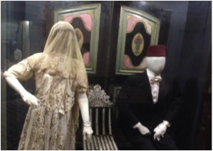 Müzenin son dakikalarında tek başıma aşağıya iniyorum. Burada eski Yahudi kültürüne ait kıyafetler var. Müze sessiz. Keyfini çıkarıyorum. Her anın.. Singer makinesine bakıyorum. Biri çeyizini bağışlamış. Bir köşede gelinle damadın kıyafetleri.. .damadın kafasında fes… taaa Osmanlı’dan kalan bir çiftin düğün kıyafeti karşımda.