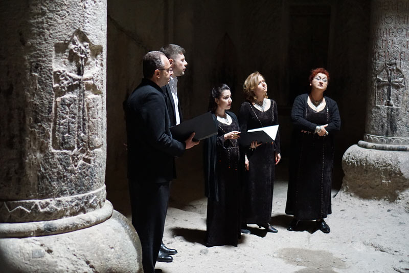 Անոնք, որոնք Հայաստան ճանապահորդելու առիթ դեռ չեն ունեցած, փոքր բացատրութիւն մը տամ, թէ Գեղարդի վանքը, կամ՝ Այրիվանքը, ինչպէս որ յայտնի էր նախապէս, ժայռափոր համալիր է։ Ան ունի մէջ-մէջի մտած սրահներ՝ կիսամութ եւ խորհրդաւոր։ Անոր սեւ պատերու վրայ կը տեսնէք բարձրաքանդակ խաչեր, իշխանական նշաններ եւ սիւներու վրայ փորագրուած յիշատակարաններ։ Այդ սրահներէն մեզ կը հետաքրքրէ ան, որ կարելի է որակել՝ «գեղաձայն»։ Չորս սիւնի վրայ կանքնած լայն տարածք մըն է ան։ Ձեղունի փոքր լուսամուտէն կ’իջնէ լոյսի փունջ մը եւ կը լուսաւորէ զայն։ Ան ունի այնպիսի կառուցուածք, որ ձայները կը ստանան մեղմ արձագանք։ Անոնք նախ ալիք-ալիք կը տարածուին սրահի մէջ, ապա պատուհանէ մը իջնելով վար՝ կը լեցնեն եկեղեցւոյ աղօթասրահը։ Երեւակայելի է, որ Սահակդուխտը այդ սրահի մէջ կը կատարէր իր եւ իր եղբօր երգերը, զմայլելով ունկնդիրները։ Այսօր, մայրաքաղաքէն ժամանած արհեստավարժ երգիչներ հայկական հոգեւոր երգի նմոյշներ կը կատարեն նոյն սրահին մէջ, հիացնելով զբօսաշրջիկները, որոնք սովորաբար իրենց աչքերը փակ կ’ունկնդրեն այդ քաղցր եղանակները։ Իսկ հիմա հարցնենք մենք մեզի. ո՞ւր կ’առանձնանար Սահակըդուխտը, ո՞ւր կը մտամփոփուէր ու կը յօրինէր իր կցուրդները եւ շարականները, երբ արարողութիւնը աւարտէր։ Այս հարցումը իր պատասխանը գտաւ հազիւ երկու տարի առաջ՝ պատահաբար, պատմական հետազօտութեան մը ժամանակ։