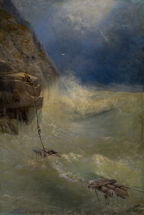Լաստը, որ փոթորկալից ծովերու մէջ նաւաբեկ նաւաստիներու փրկութեան վերջին յոյսն էր, չէր կրնար վրիպիլ ծովանկարիչ Այվազովսկիի հայեացքէն։ Ուստի, 1886-ին մեծ վարպետի վրձինին տակ վերածուեցաւ իւղանկարի մը. «Լաստ Հաւաքողները» («Նաւաբեկութենէն Փրկուողները»)։