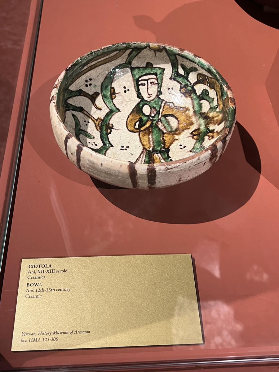 Sergi kataloğunun da yazarı olan Pogossian, sergide Marco Polo’nun söz konusu bölgelerde görmüş olabileceklerini canlandırmak için, özellikle Ermenistan’daki El Yazmaları ve Araştırmaları Enstitüsü Matenadaran’dan, Ermenistan Tarih Müzesi’nden ve Venedik’teki Mıhitaryan Manastırı’ndan eserlerin biraraya getirilmesini sağlamış; bu kurumlardan, Marco Polo’nun geçtiği şehirlerde ya da bölgelerde bulunmuş haçkarlara ait parçalar getirtmiş. Sergide, Kilikya’dan ve Ani’den el yazmaları da önemli bir yer tutuyor. Örneğin, 1338 yılında Sis’te (Kozan) yazılmış bir İncil, aynı yıllarda yapılmış, Kilikya krallarından IV. Levon’un portresi ve Ani şehrinden bir seramik çanak, Ermenilerin Orta Çağ’daki kültürel ve tarihî coğrafyasını temsil eden önemli eserlerden bazıları. Pogossian sergide yer alan, Ani’den değerli bir el işinin önemini ve bu tür eserlerin günümüze ulaşmış olmasının büyük bir şans olduğunu vurguluyor.