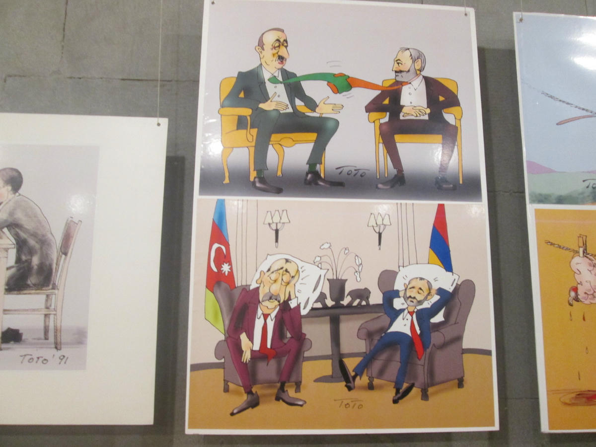 Իրօք որ շատ հզօր է Թորոսեանի երգիծանքը որքա՜ն էլ խօսեն իր եզակի շնորհքի մասին, որքա՜ն էլ գնահատէն եւ գովերգէն, միեւնոյնն է՝ այդ տաղանդին համարժէք բնորոշում չեն գտնի։ Այստեղ է երեւում նկարի, առաւել եւս երգիծանկարի առաւելութիւնը խօսքի համեմատ։ Բերեմ ընդամէնը մէկ օրինակ երգիծանկարը կոչւում է «Հայաստանը բաժանեցինք մարզերի»։ Եւ ի՞նչ ենք տեսնում 11 մարզպետների, որոնց ձեռքերը պինդ բռնել են լափամանները։ Հետաքրքիր է, որ ինչքան էլ ասենք Հայաստան եւ Արցախ, ToTo–ն պատկերում է 11 մարզպետների, այսինքն Արցախը ոչ թէ առանձին հանրապետութիւն է, այլ իրականում Հայաստանի 11-րդ մարզն է եւ վերջ։ Այսինքն Թորոսեանի արուեստի մէջ քաղաքականութիւնն ու նկարչութիւնը փայլուն կերպով համագործակցում են։