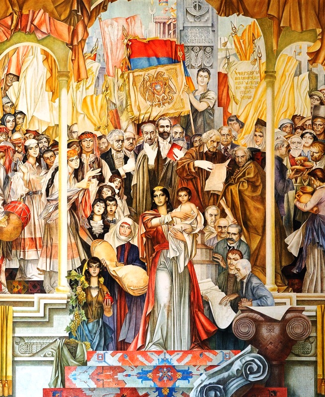 Աստղիկը կը սկսի նկարի կեդրոնական դէմքը ներկայացնել՝ մայրացած հայուհին. «Երեխե՛ք, որմանկարում Հայաստանի վերածնման գաղափարն է արտայայտուած, նորածինը գրկին կնոջ ֆիգուրով։ Նա գեղադէմ է եւ բարեդէմ։ Դիմագծից գիտենք, թէ նա գթասիրտ է եւ բարեխօս»։